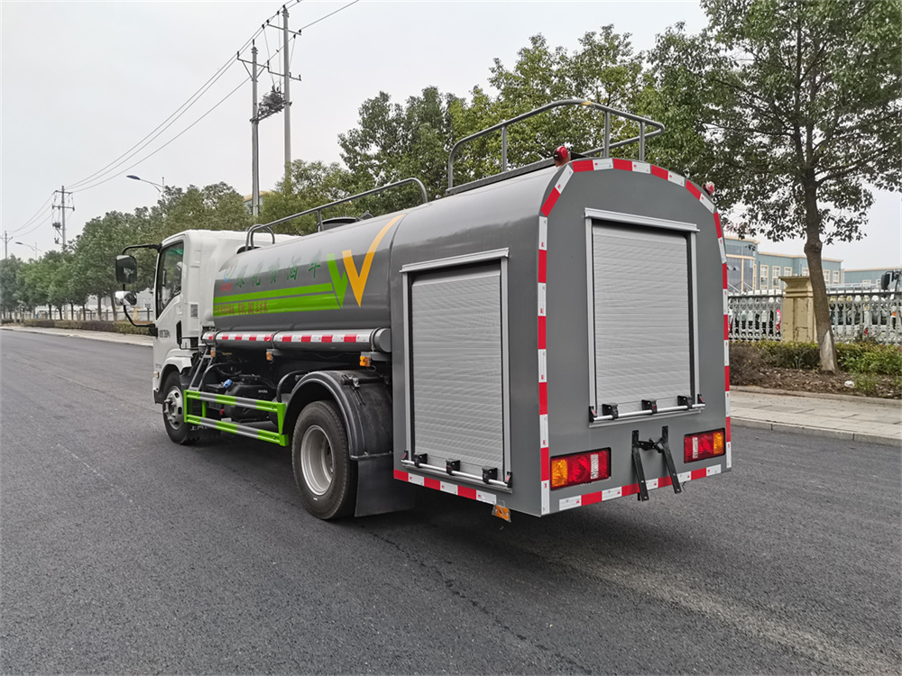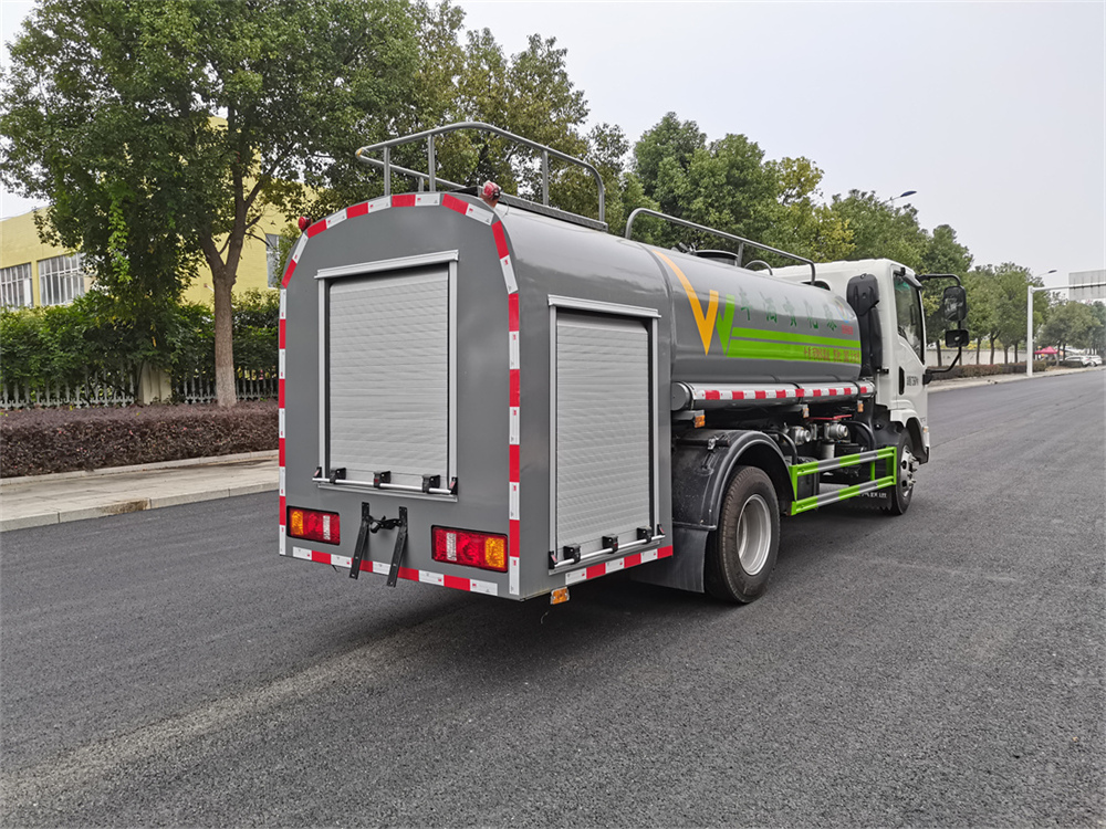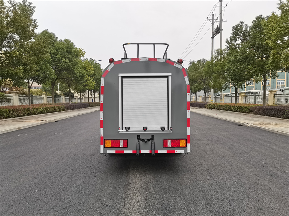 灑水車前裝有鴨形噴嘴或圓頭沖嘴,后面裝有圓柱開灑水噴嘴或蓮蓬頭噴嘴,后部有一工作平臺,裝配有水炮。后部還可裝8個噴嘴(選裝)。