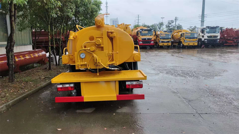 上裝配置:整車尺寸:5600*1850*1980罐體總?cè)莘e3立方,罐體尺寸: 2800*1550*1000罐體為橢圓形,罐體分水倉和污倉,高壓部分配一臺雙耀135L的高壓泵,吸污部分配置一臺SK-6水循環(huán)泵,罐體尾部有一個加粗的視糞亮管,一個可以左右擺動的高壓卷盤。