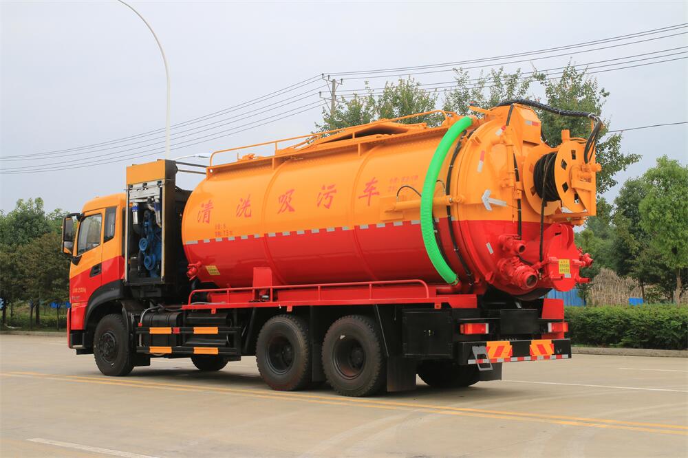 22方清洗吸污車-東風天龍22方清洗吸污兩用車-帶副發動機 圓罐