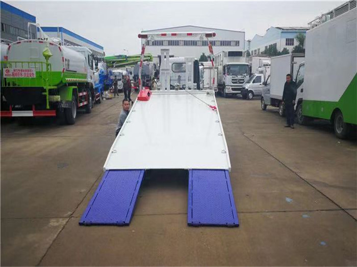 該車平板長度4.2米,寬2.3米,平板采用新型一次性成型帶孔沖壓板或4個厚花紋板,尾板可選用翻轉板或新款抽拉式尾板,尾板長1.2米,3噸上裝,配液壓絞盤4噸,21米鋼絲繩,雙側聯動操作.