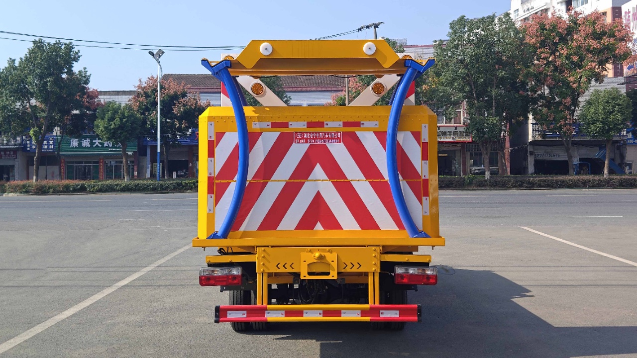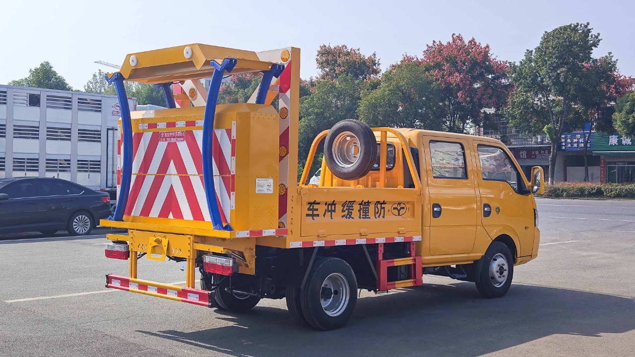上裝配置:采用Q235國(guó)標(biāo)邊板,底板花紋板,不銹鋼合頁(yè),箱體后部防撞緩沖模塊包采用暢行達(dá)70K防撞緩沖模塊,防撞緩沖吸能模塊主要由車載防撞緩沖墊和導(dǎo)向標(biāo)志架組成,充當(dāng)施工作業(yè)車輛后方的緩沖衛(wèi)士。
